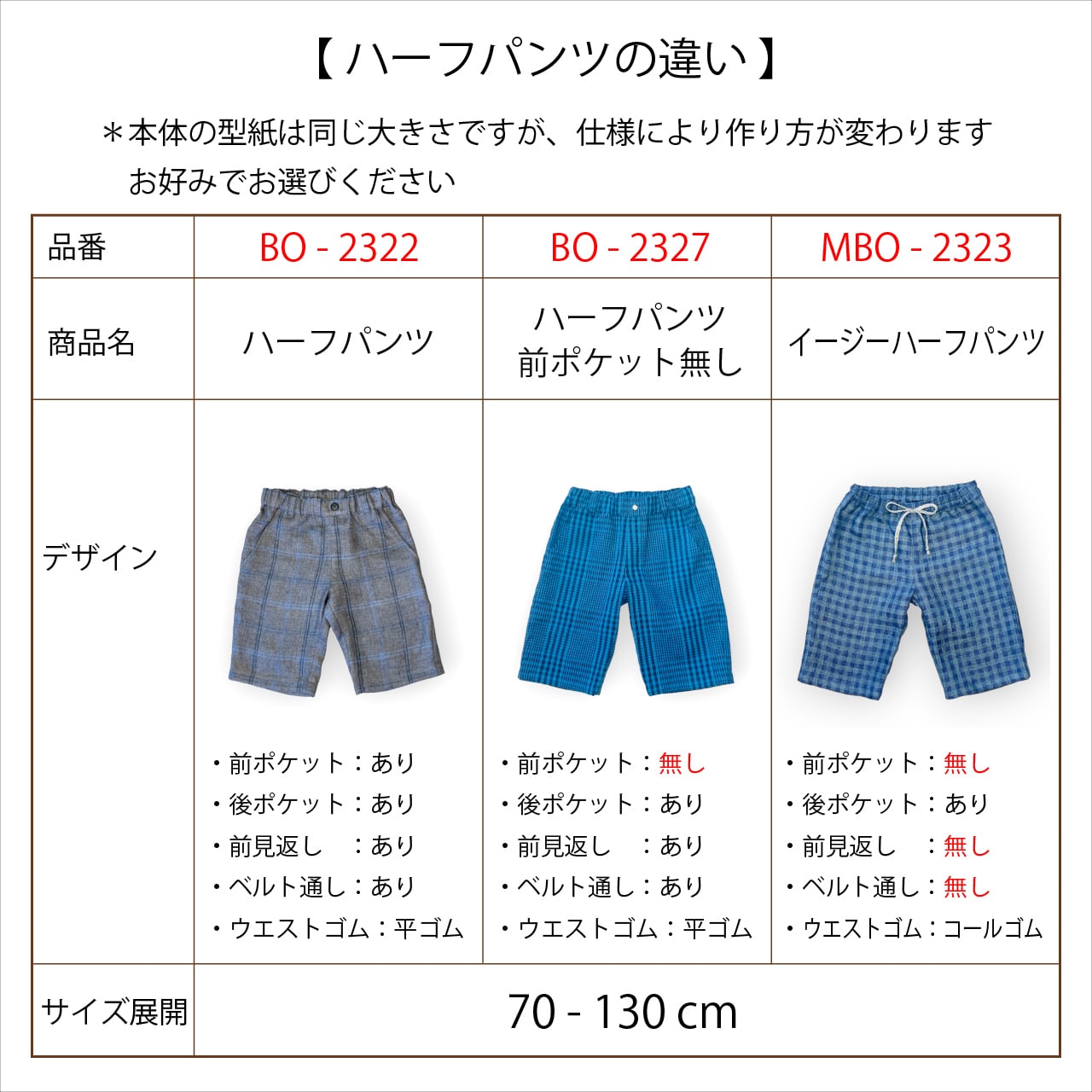 前ポケット無しのハーフパンツ 型紙と作り方のセット 型品番:BO-2327子ども服の型紙ショップtsukuro ツクロpoweredby BASE。