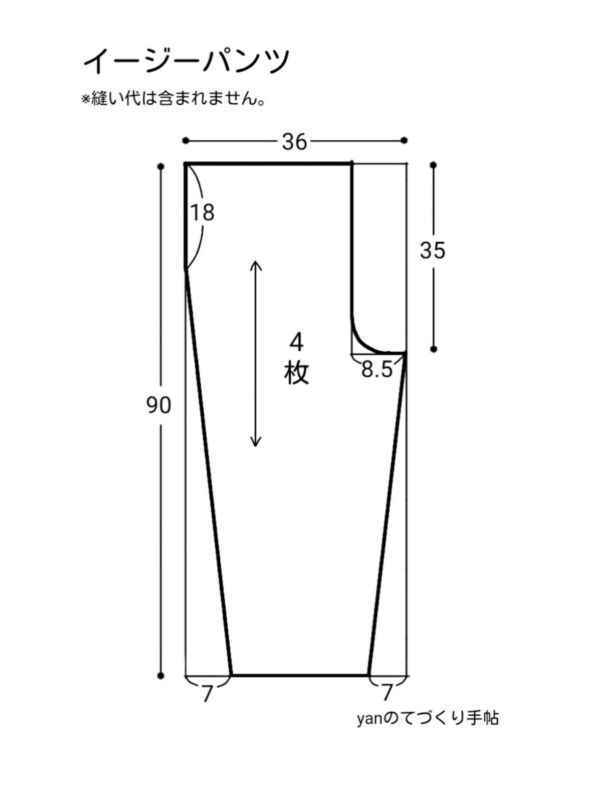 型紙と作り方サルエルパンツ ロング– パタン推しパペット・被り物・子ども服の型紙。