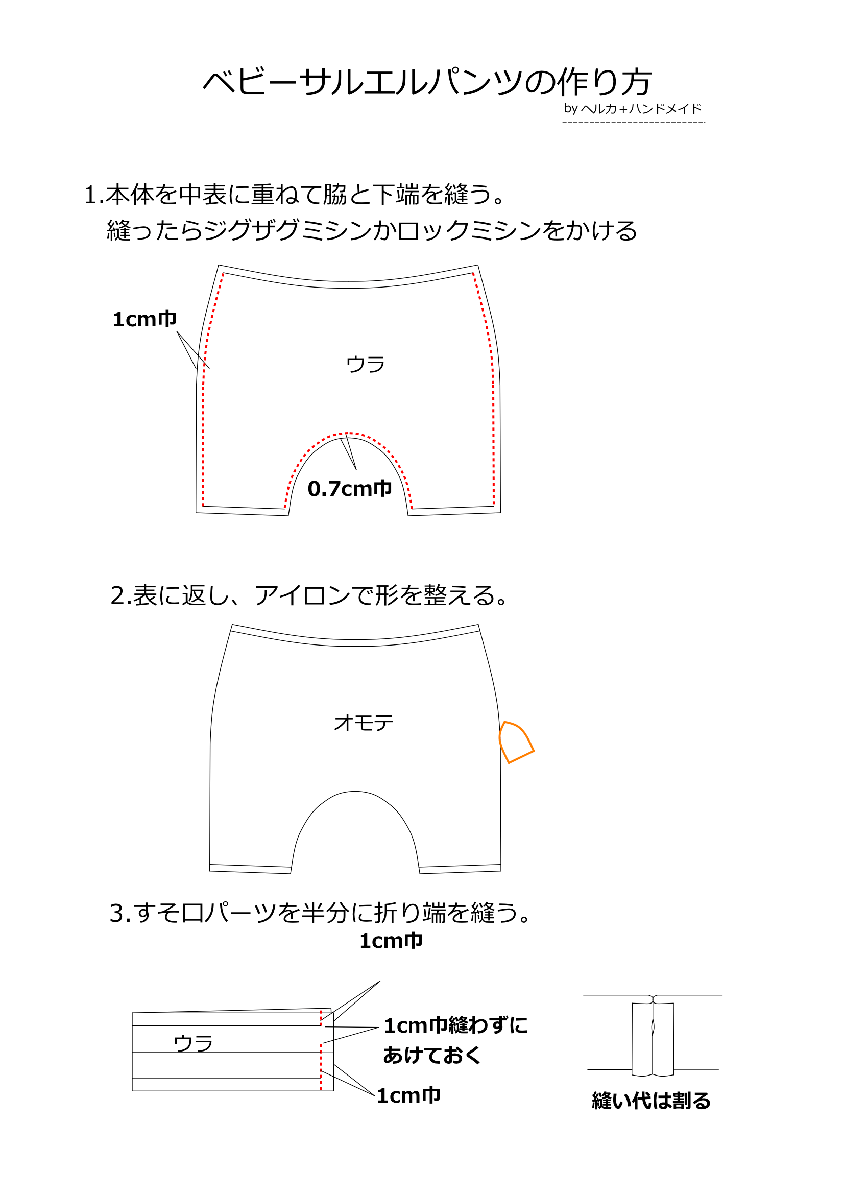 無料型紙 子供服ベビーサルエルパンツの作り方ヘルカハンドメイド。