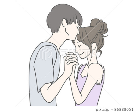 でこちゅー カップルつなぎ キス 10代後半から20代前半 おうちデートのイラスト素材86888051- PIXTA。