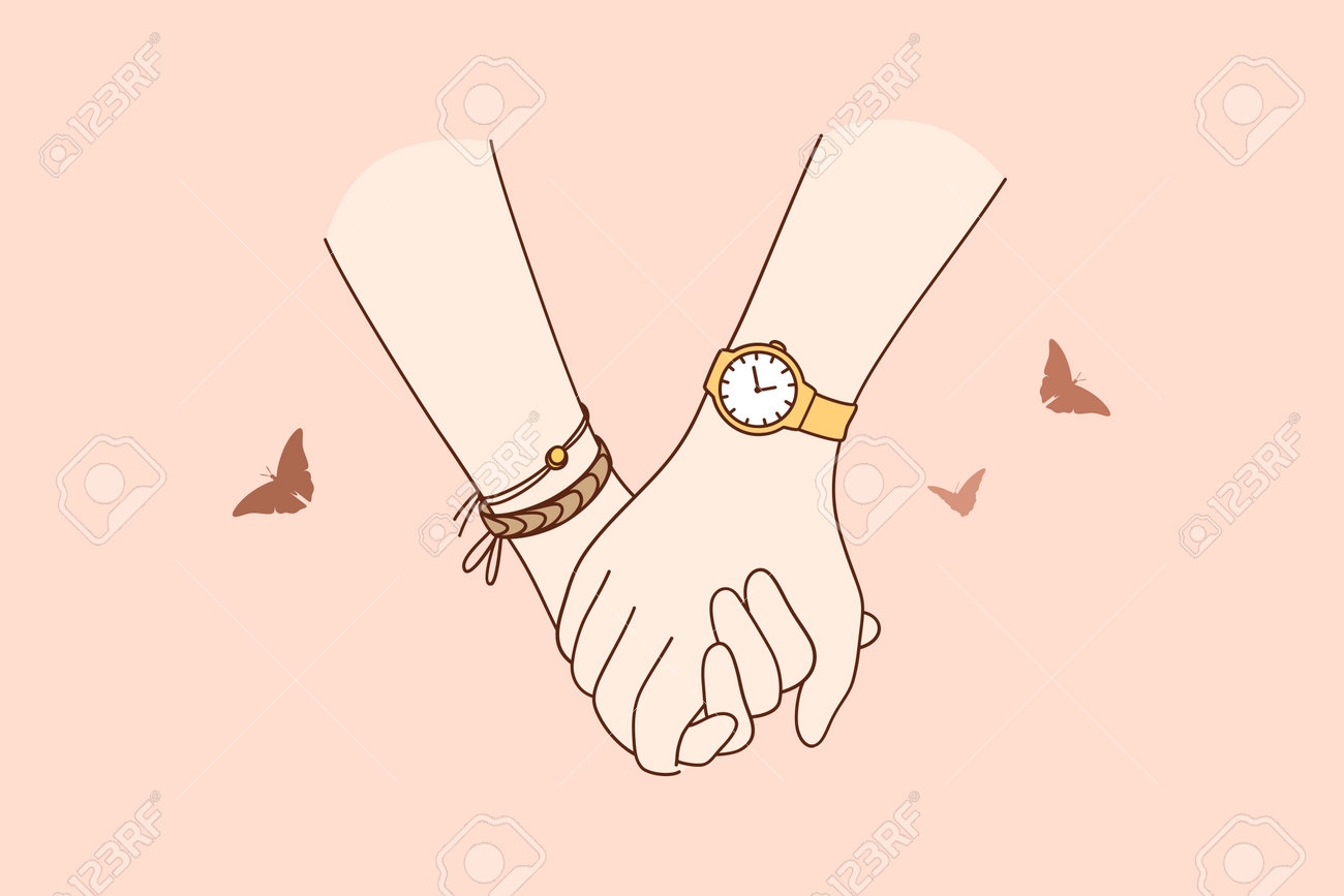 手をつなぐ、愛、一体感のコンセプト。愛と優しさのイラストを感じて散歩中にお互いを保持しているカップルの手のクローズアップのイラスト素材・ベクターImage 162196210。