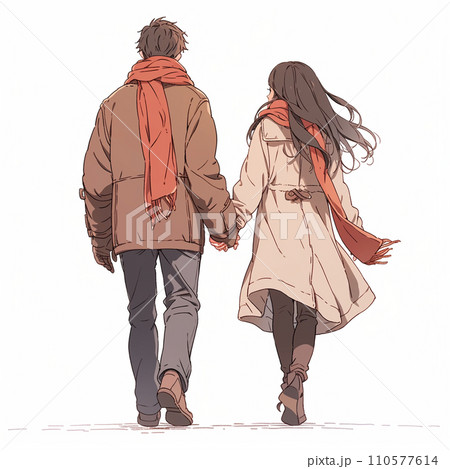 手を繋いで歩くカップルのイラスト素材110577614- PIXTA。