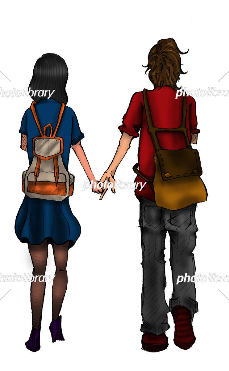 手を繋いで歩くカップルの後ろ姿のイラスト素材73127369- PIXTA。