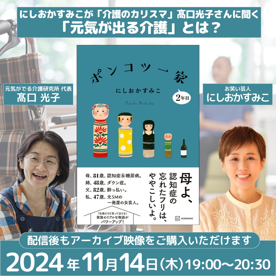 本当に本人が書いてる?」と疑われ 認知症で糖尿病の母、ダウン症の姉、酔っ払いの父 にしおかすみこが「パワーアップ」した家族の姿を描いた『ポンコツ一家2年目』刊行!株式会社講談社のプレスリリース。