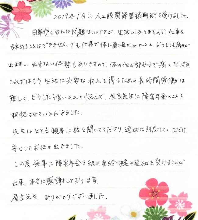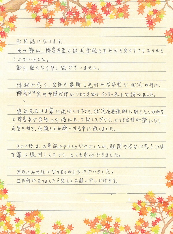 感謝のお手紙 - 社会保険労務士法人 ほほえみ障害年金Labo。