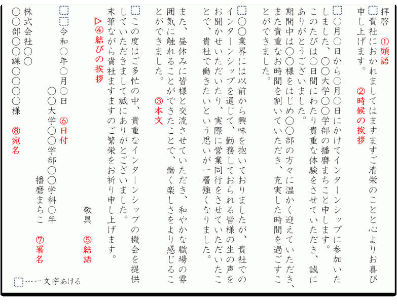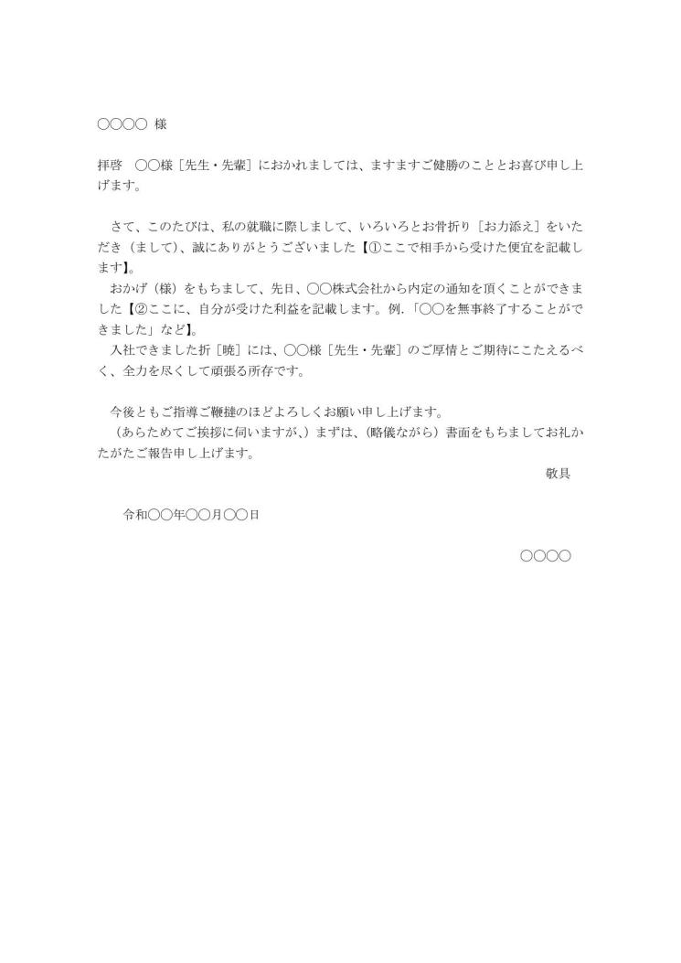 就職活動―就職でお世話になった人へのお礼状の書き方・例文・文例 テンプレート03 手紙形式ワード Word-文書 テンプレートの無料ダウンロード。