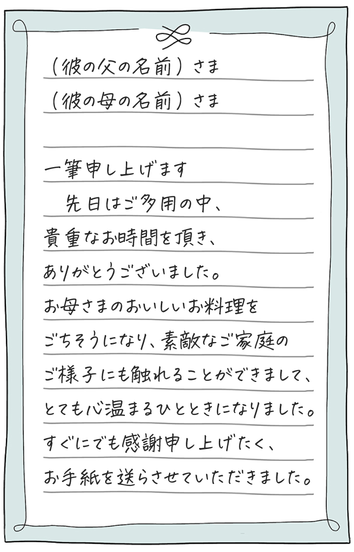 彼親が喜ぶ! 親あいさつ&顔合わせ後のお礼の書き方 手紙・SNS文例 ゼクシィ。
