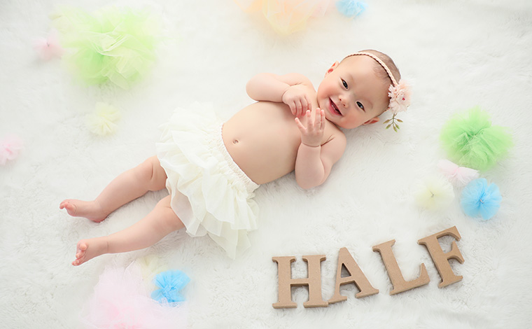 人気の月齢フォトって? ベイビーコレクションお宮参り・百日祝い・赤ちゃん写真のフォトスタジオ・写真館はらかんスタジオ。