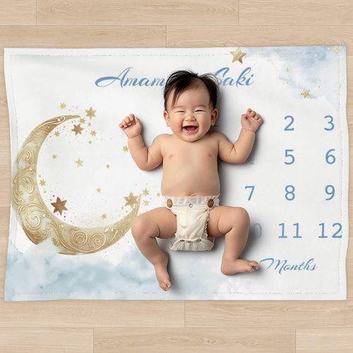 赤ちゃん名前入り寝相アートマット 月齢フォトブランケット お月様 雑貨・その他 Mix Design 通販 18481703Creema クリーマ。