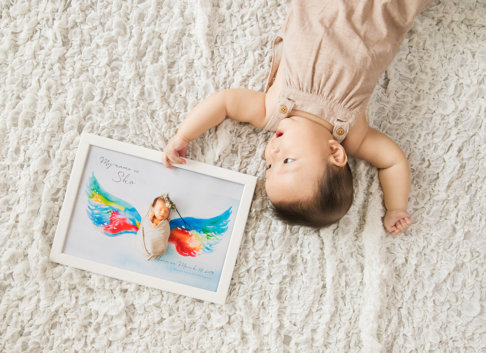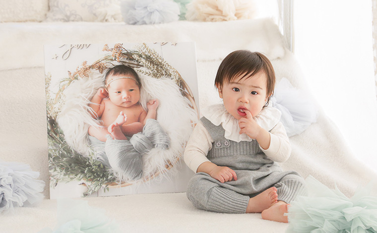 ニューボーンフォトの活用アイデア。赤ちゃんの成長記録や月齢フォトを、ニューボーンフォトを使っておしゃれに残しませんか。
