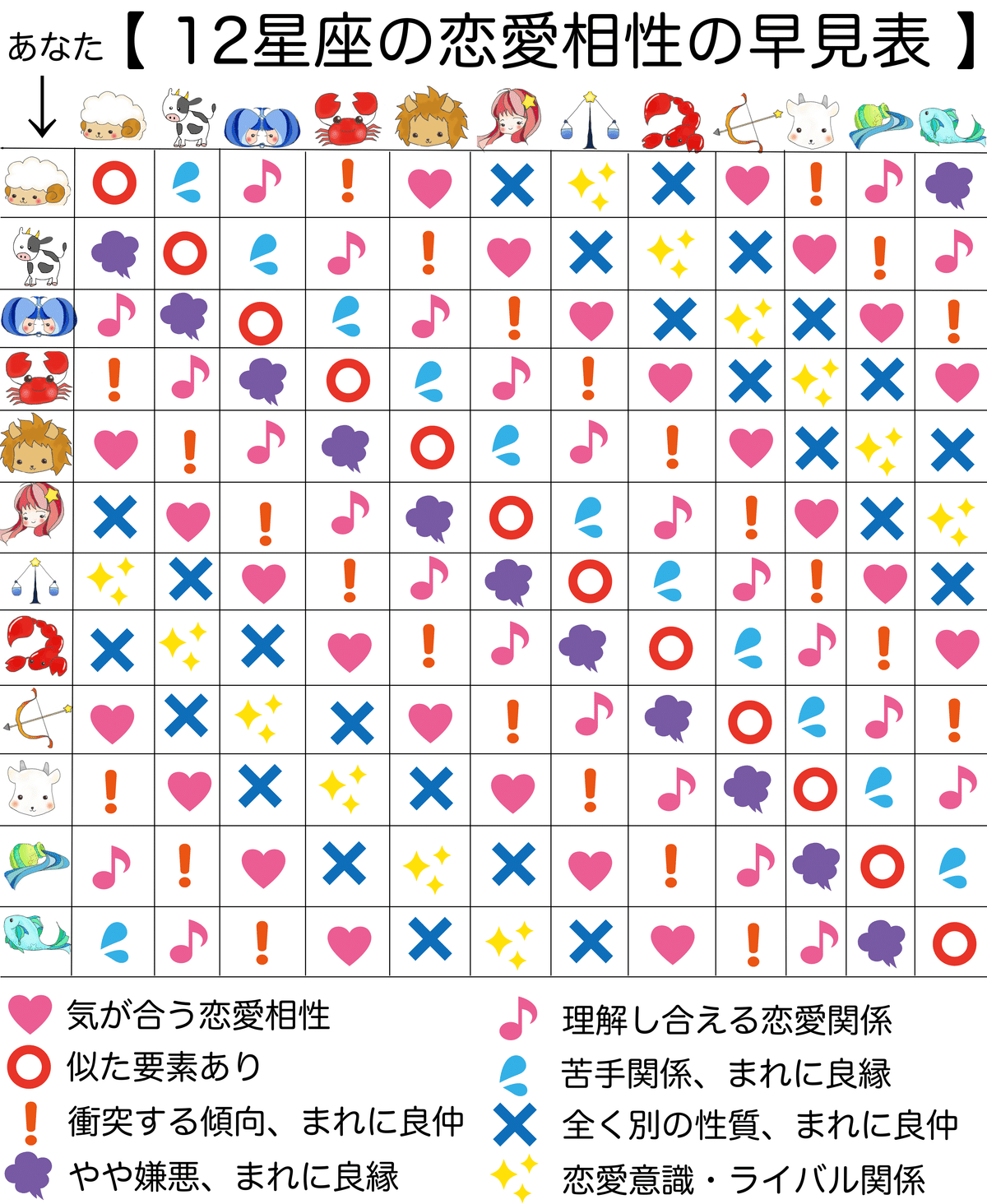 12星座の恋愛相性の早見表牡牛座の男性占い。