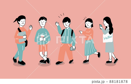 キャンパスや部活、サークル、アルバイトなどの仲間のところへ若者・大学生が集合するイラストのイラスト素材88181878- PIXTA。