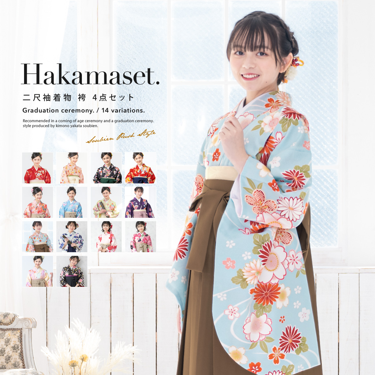袴4点セット CCM D ジュニア袴セット 卒業式 小学生 袴 セット ジュニア 女の子 12colors 中学生 振袖 卒服 着物 二尺袖着物ガールズきものKYOETSU 公式。
