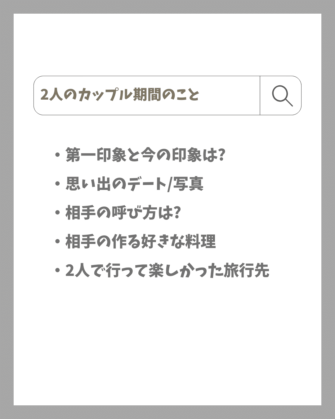 結婚式のプロフィールブック作成に役立つ質問リスト80選。