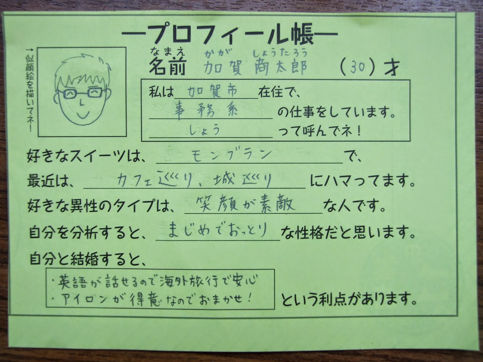 加賀商工会議所トピックスブログ:2015 6 27SWEETS婚活 異性はココ見ている!プロフィール帳で良い印象を受けるには。
