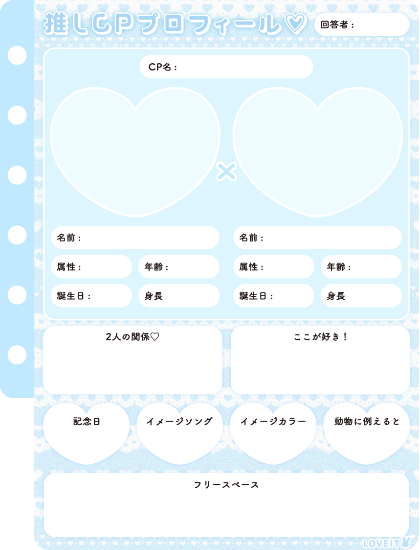 プロフ帳 推しCP💕プロフィールカード フリル柄Ver.🎀LOVEIT。