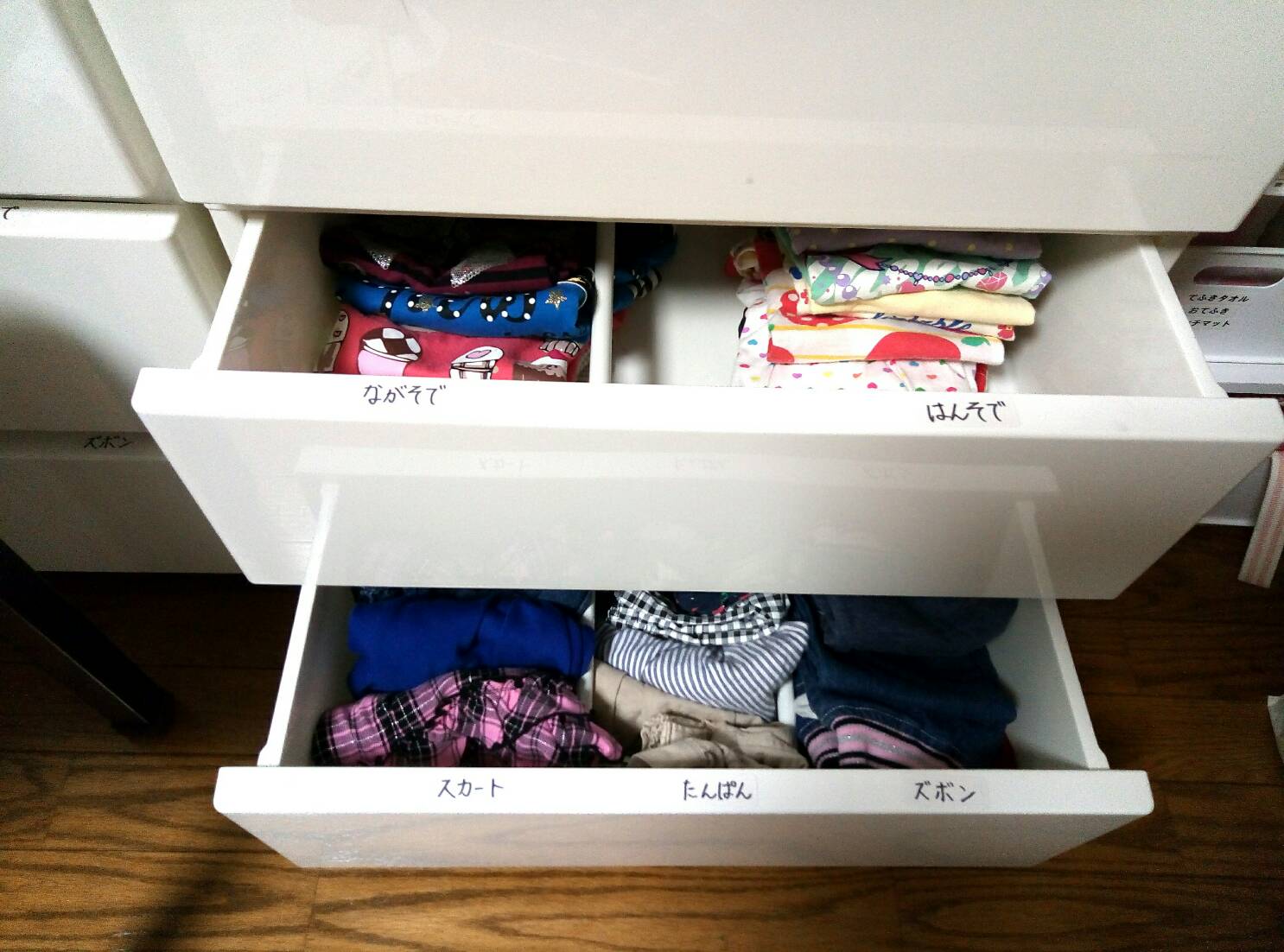 チェスト内の子供服をセリアの仕切りで使いやすく!毎日の暮らしも心もラクに!家族で進めるお片づけ 静岡県裾野市の整理収納アドバイザー 諸橋史子。