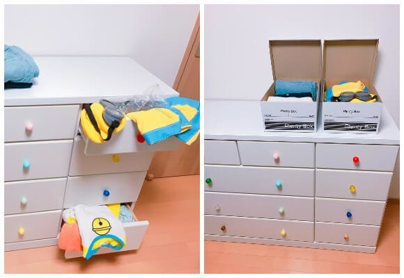 ダイソー・セリアの紙ボックスが神 子ども服の簡単・効率的な保管方法ヨムーノ。