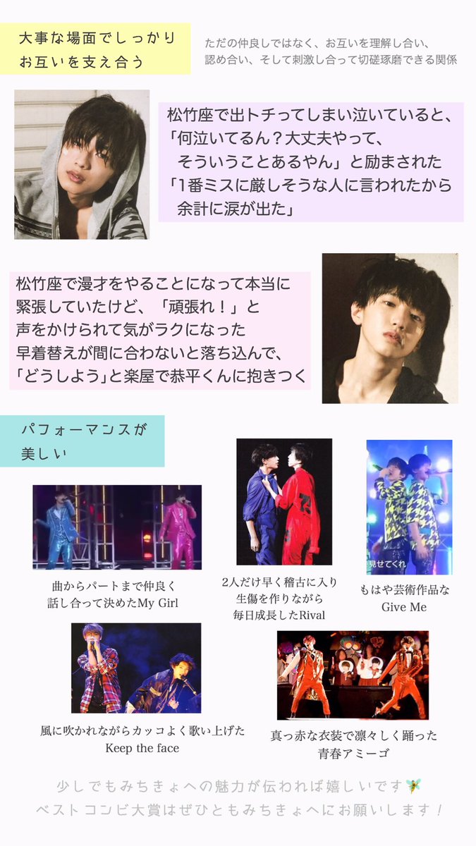 なこ🍯😈👼🏻 on X: "恭平くんがみちきょへを流行らせていこうかなって言ってるから、去年ベストコンビ大賞のために作ったステマでも見てってや〜🤚💗💜"X。