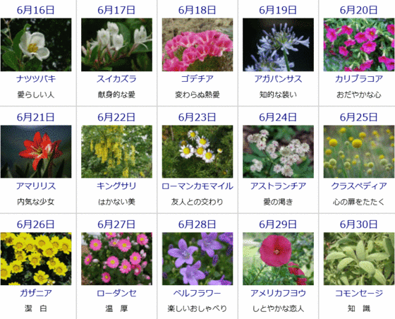 6月の誕生花と花言葉カレンダー♪ゆうちゃんのブログ。