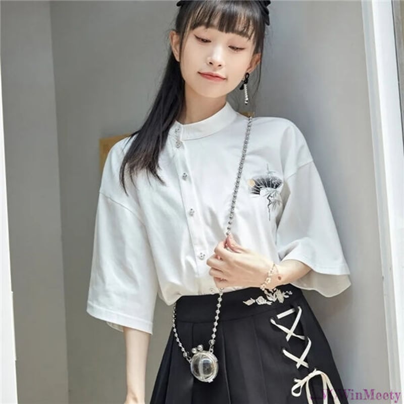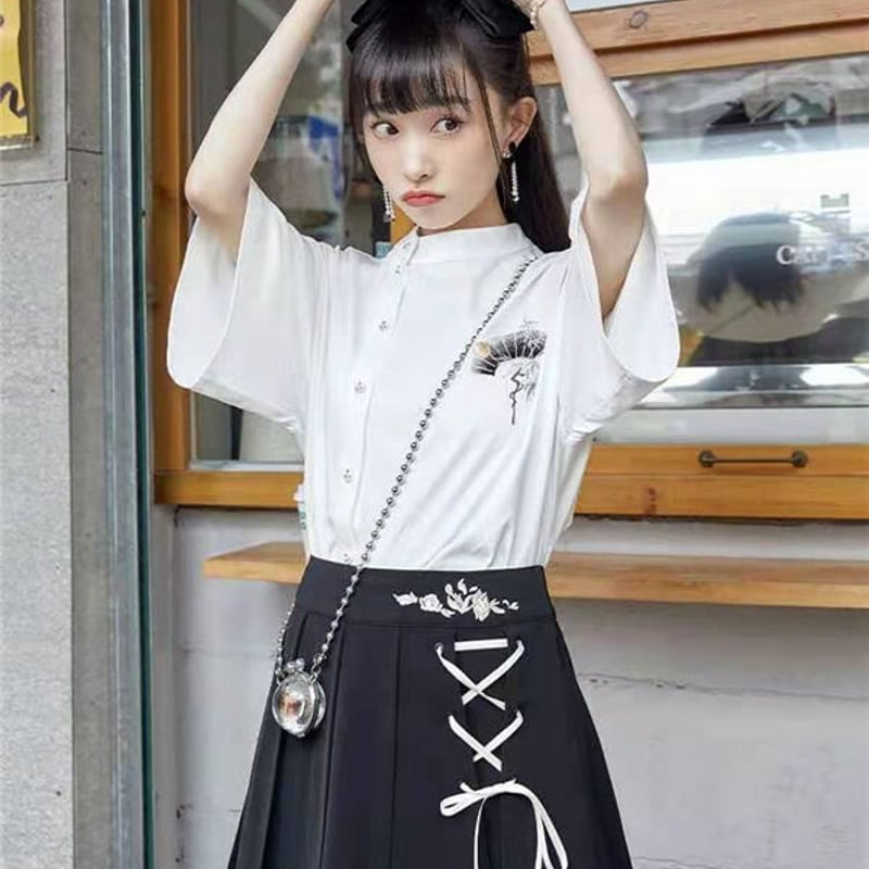 漢服 コスプレ衣装 中国伝統衣装 古風 可愛い ハロウィン 学園祭 おしゃれコス服 猫刺繍 合わせえり 日常ミニスカートCostowns。