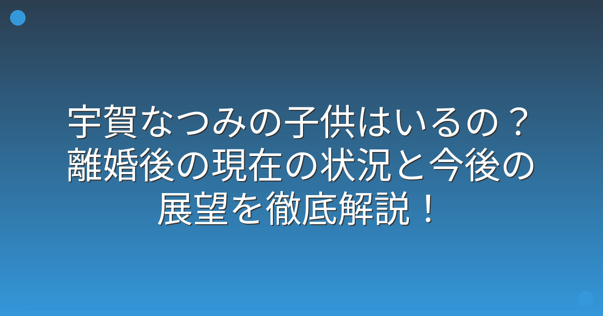 宇賀なつみの子供はいるの?離婚後の現在の状況と今後の展望を徹底解説!Tsurubolg。