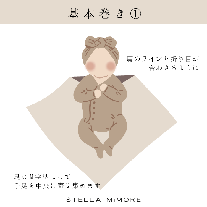 おくるみの巻き方 : 生後1ヶ月の新生児の寝かしつけに役立つおくるみの巻き方ガイドStella Mimore ステラミモア。