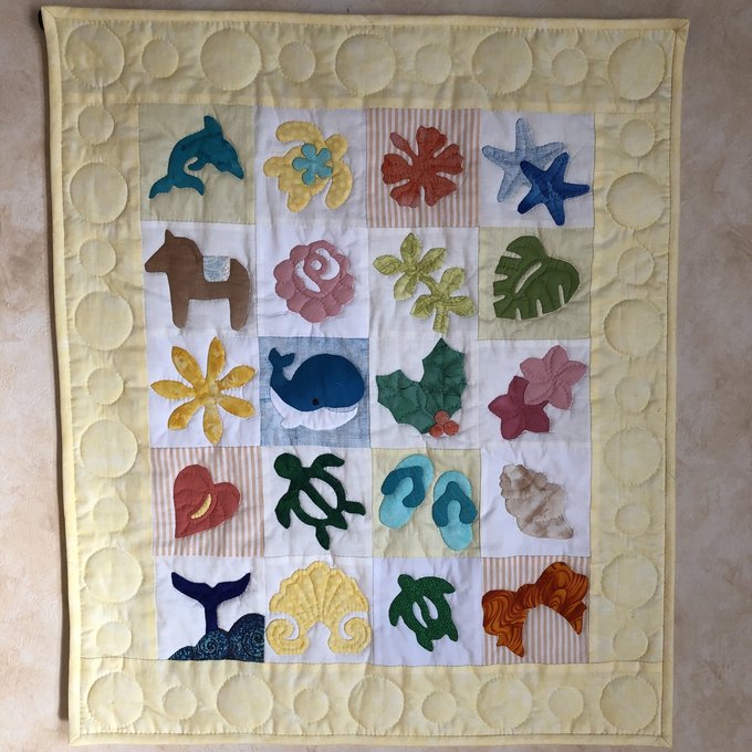 ハワイアンキルト ベビーキルト おくるみタペストリ。