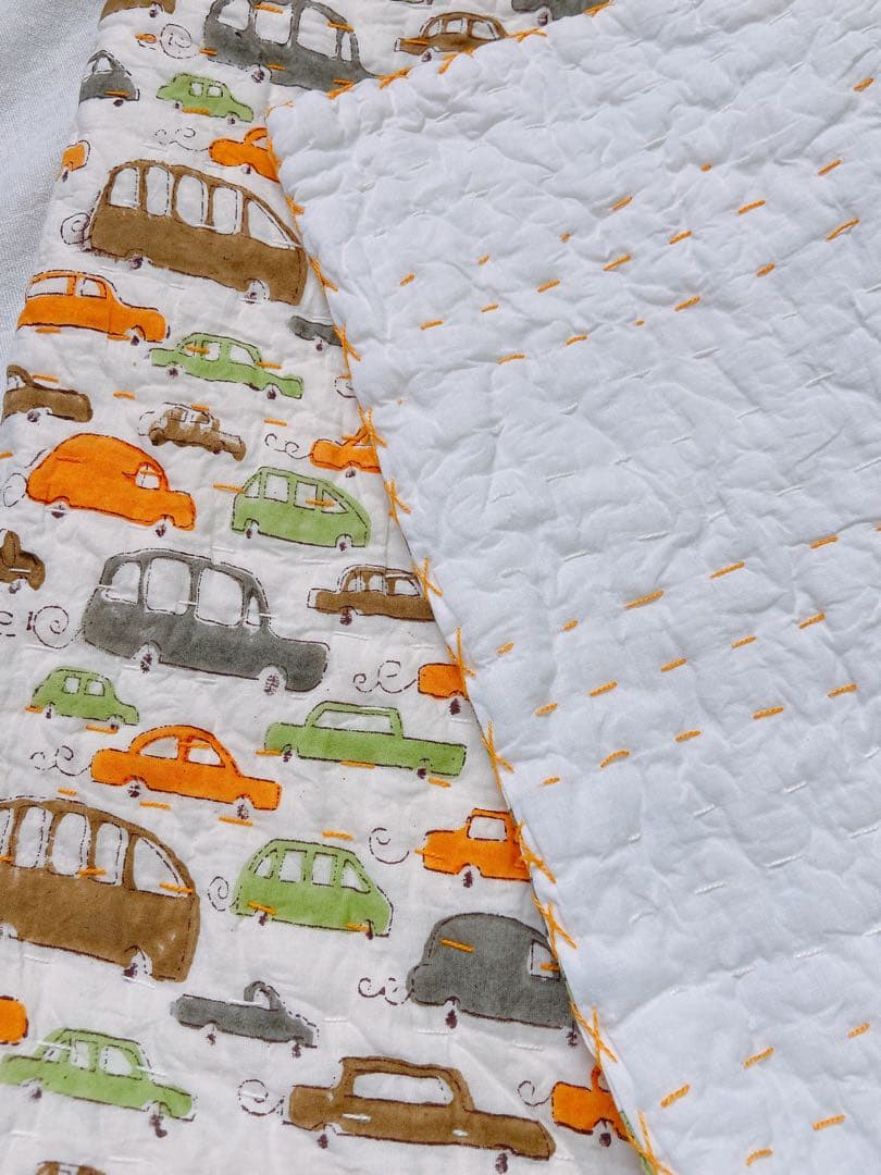 インド製 ベビーキルト コットン100% 車 ベビー・キルト おくるみ ・Ayuj handicrafts。