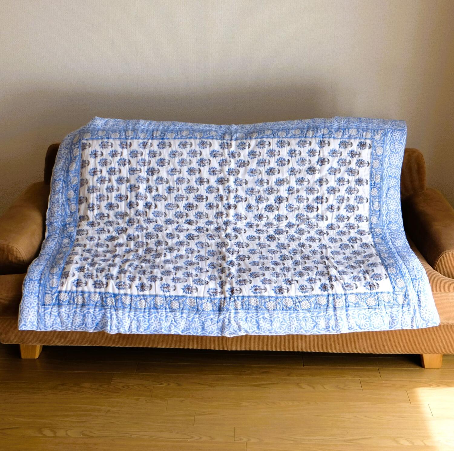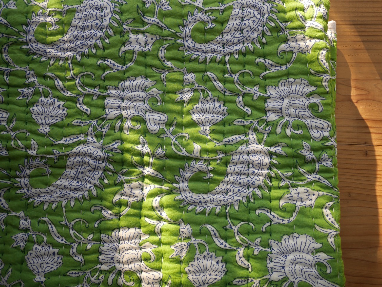 ベビーキルト おくるみ インド綿 ブロックプリント フィッシュ ツリー エレファント100x140cm おしゃれ かわいい ブランケット キルトブランケットおくるみ 中綿キルト アニマル柄 エシカル ハンドメイド インド雑貨 アジア雑貨 ボタニカル 毎日暑いですが。