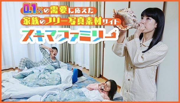 フリー素材サイト「スキマファミリー」の世界観がヤバイ! 「娘にほら貝の吹き方を教えている母」「父の顔に値引きシールを貼る母」などPouch ポーチ。