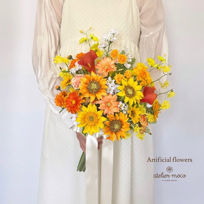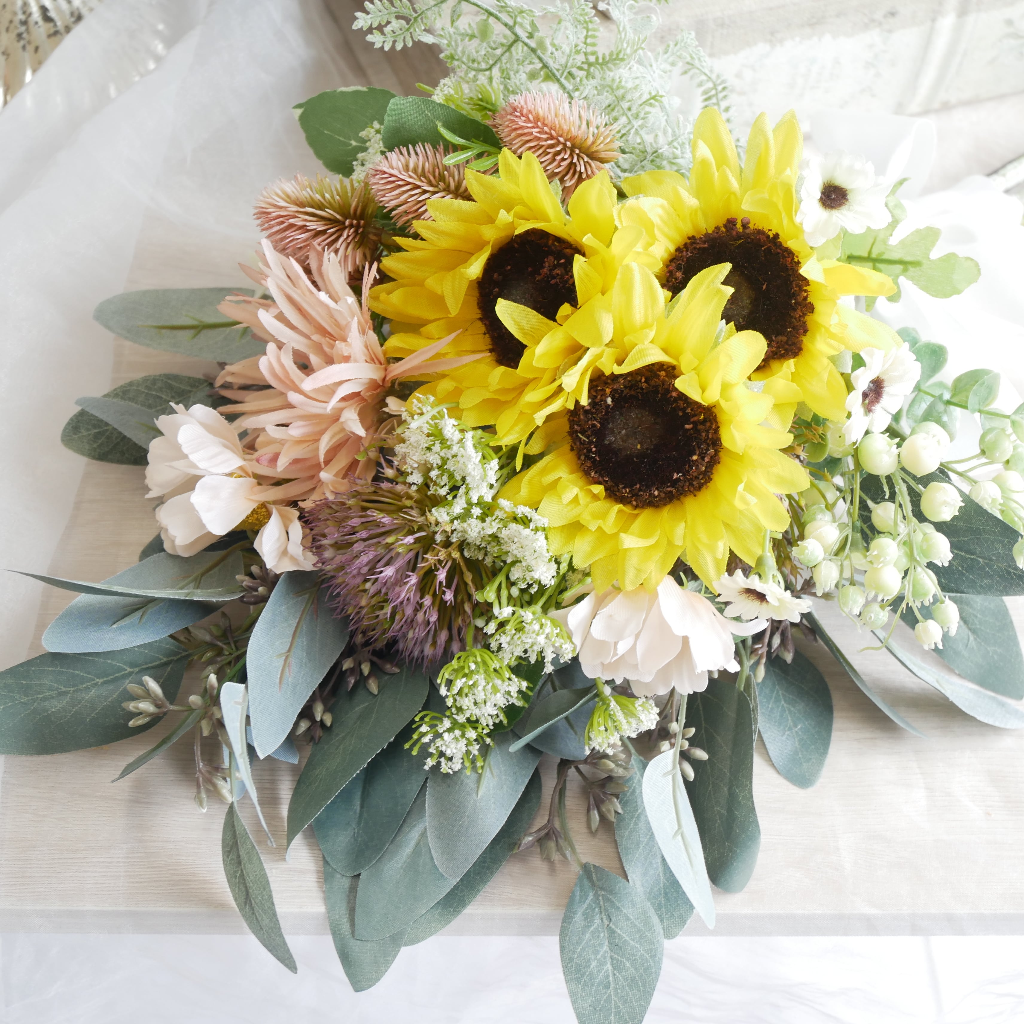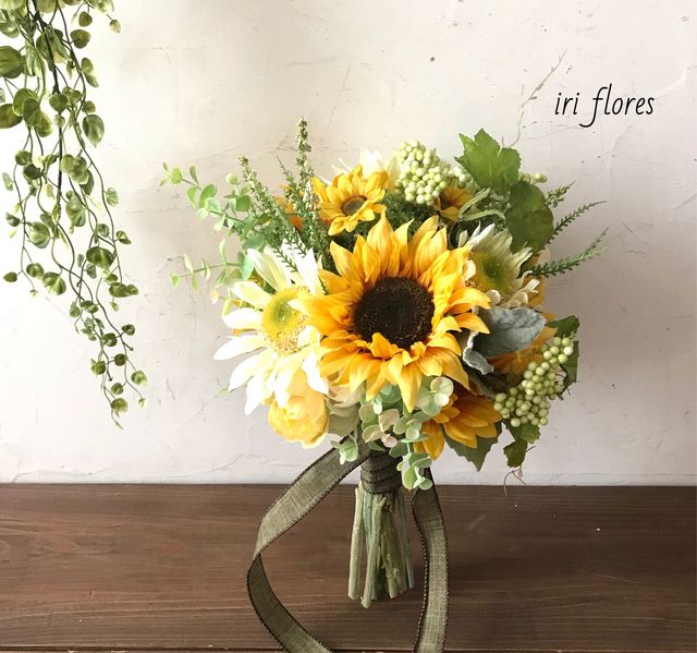 造花 ひまわりのナチュラルブーケ 結婚式 フラワー ブーケ ブートニア– 結婚式準備サイトCORDY コーディ。