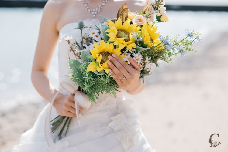 夏の結婚式の参考に!ひまわりを使ったおしゃれなブーケの画像20選First Film ファーストフィルム結婚式のエンドロール・ムービー撮影。