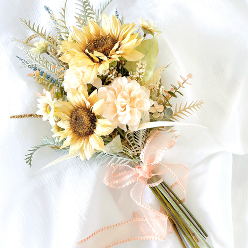 再販♥向日葵ひまわり高級造花ブーケ 結婚式・前撮りに◎※ブートニア別料金 - メルカリ。