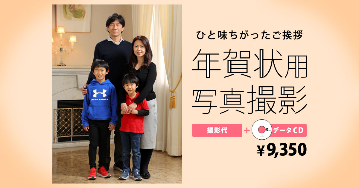 年賀状・ポストカード用 家族写真 きほん撮影料金 1ポーズ- 写真館 スタジオミナヨ文京区小石川女性カメラマン。