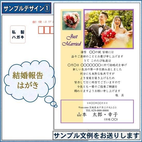 Amazon高級紙 私製 結婚報告はがき 文例印刷入 30枚 デザインNo.830 文例Aポストカード・絵柄付はがき文房具・オフィス用品。