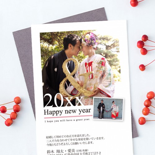 結婚報告の年賀状 文例と写真の入れ方 - ネット印刷は 印刷通販@グラフィック。