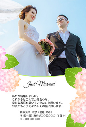 入籍・結婚報告 はがきデザイン見本即日印刷プリントメイト。
