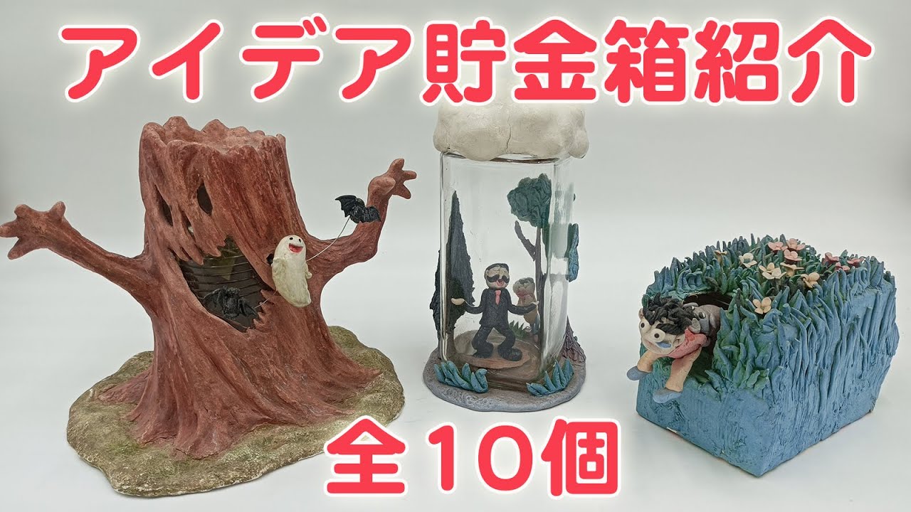 作品まとめ ころがる貯金箱シリーズ4 アイデア貯金箱・紙粘土。