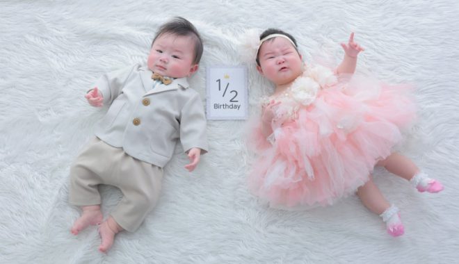 ベビーフォト 双子ちゃんのハーフバースディ@福岡県豊前市おうちスタジオ行橋〜中津赤ちゃんの写真を残すママカメラマンつむぎ。