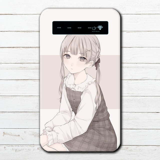 モバイルバッテリー イラスト 可愛い女の子 かわいい おしゃれ服 ロリっ娘 おすすめ 個性的 iPhone 軽量 小さい 女性 男性 メンズ セクシーメイド服 銀髪 ロングヘア ツインテール 白タイツ 絶対領域 人気 イラストレーター クリエイター 絵師 オリジナル デザイン。