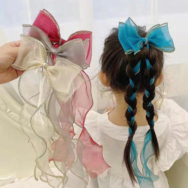 ヘアクリップ ヘアアクセサリー 2個セット キッズ 女の子 子ども ヘアアレンジ 編み込み リボン リボン型 ロングリボン 可愛い 透け感 :KAWAeMON - 通販 - Yahoo!ショッピング。