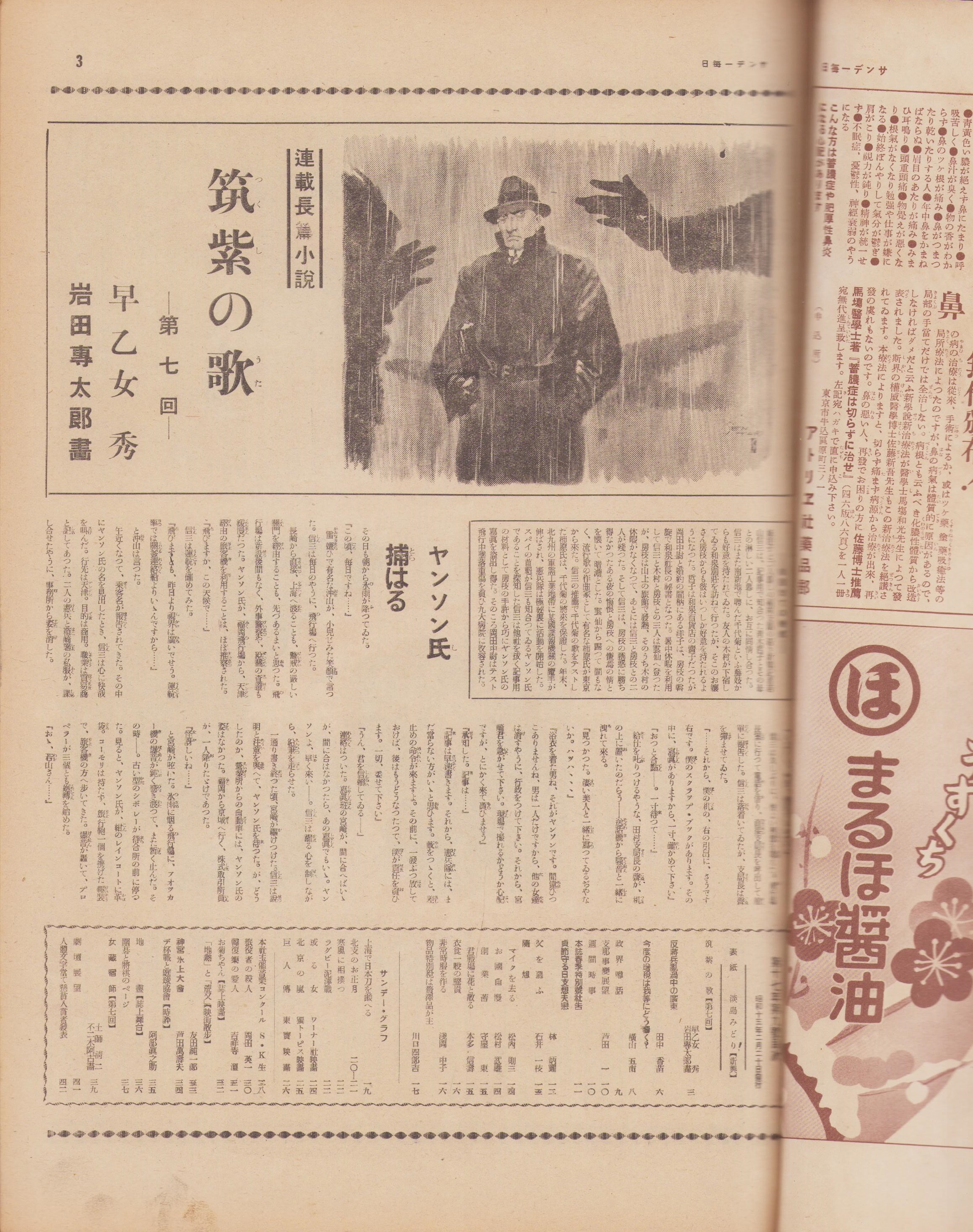 サンデー毎日 昭和13年2月20日号 表紙モデル・淡島みどり 新興“反蒋”兵乱渦中の廣東 2頁抗日線を越ゆる愛 2頁北支のお正月モノクロ2頁上海で日本刀を鍛へる モノクロ1頁映画紹介「お菊ちゃん」日活多摩川映画 監督・森永健次郎 2頁 、早乙女秀。