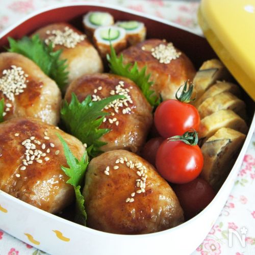キャラ弁 肉巻きおにぎりで♡テッドも美味しく食べちゃお♡。