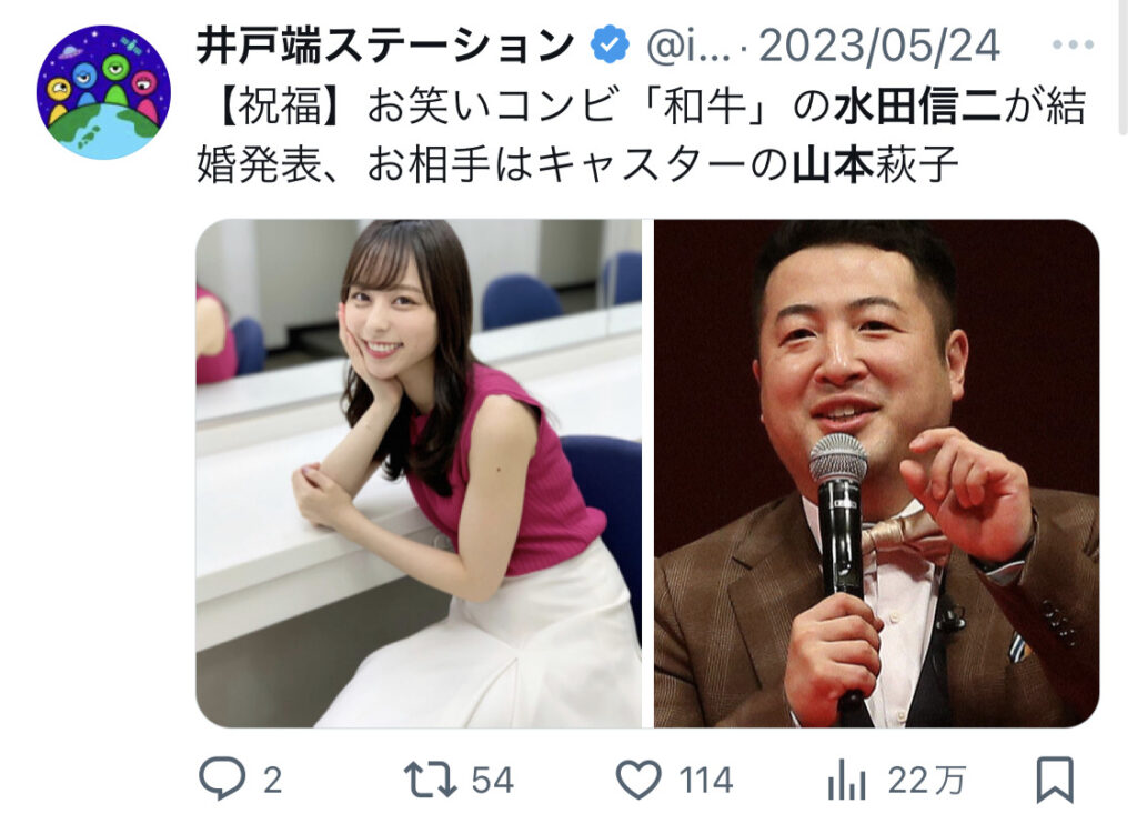 和牛・水田43 結婚 お相手は元ZIPリポーター。和牛・水田信二、結婚を発表 お相手はセント・フォース所属の山本萩子│ZIP! 2023年05月25日- Moe Zine。