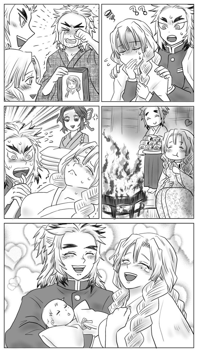 ⚠️煉蜜 妊娠注意 家族が増える煉獄家のポートレートです。kmtけしからん系 🔥🍡・🍶🍡・🧹🍡の人さんのマンガツイコミ 仮。