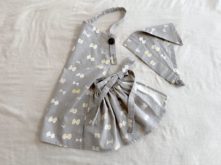 オリジナル型紙 かわいい!洋服より簡単な子ども用ギャザーエプロンの作り方 - 縫いナビ 生地のマルイシ。