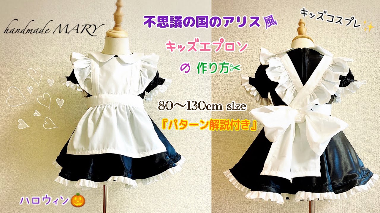 キッズエプロン アリスエプロン の作り方80〜130cm size パターン解説付き。