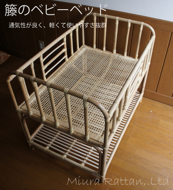 ベビーベッドBA-019ラタンベビーベッド・籐ベビーベッド 籐家具職人の店みうらラタン。