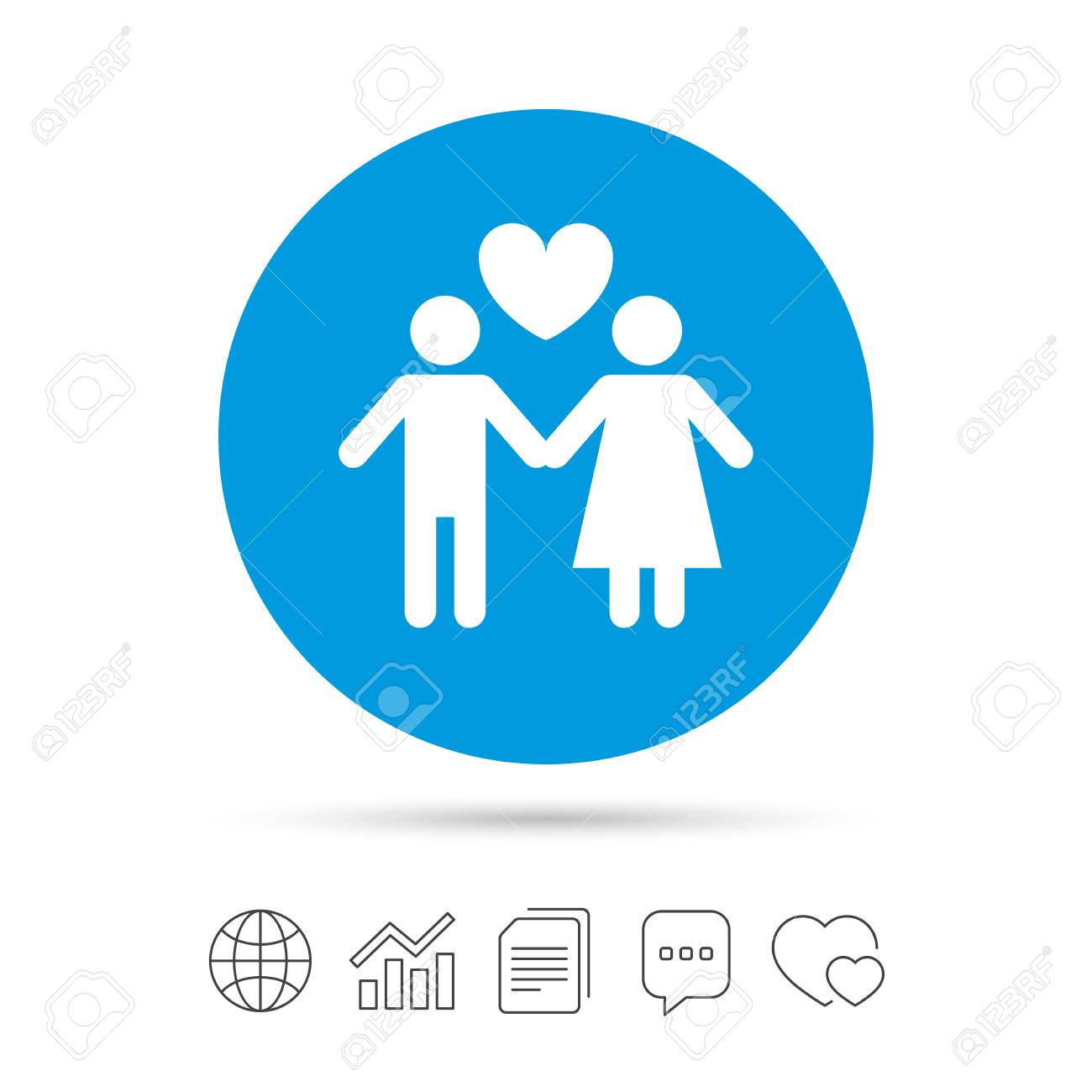 カップルは記号アイコンです。女性が男性の愛。心の恋人。ファイルのコピー、音声バブルとグラフ Web アイコンをチャットします。ベクトルのイラスト素材・ベクターImage 76311226。